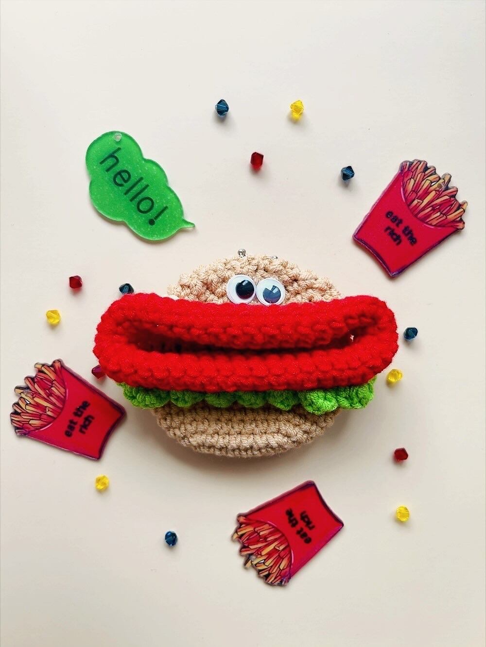 なんだか目が合うだけで癒されるパクパクモンスターチーズバーガーのイヤホンケースです